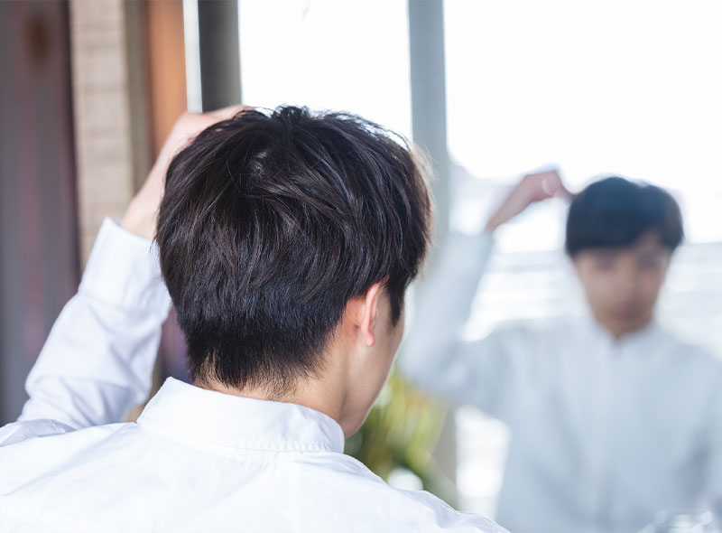 薄毛や抜け毛の原因は一つではありません。ストレス・偏った食事・喫煙・加齢など、さまざまな要因が絡み合っています。なかでも男性に多いのがAGA(男性型脱毛症)。進行性のため、気づいたときには症状が進んでいるケースも少なくありません。