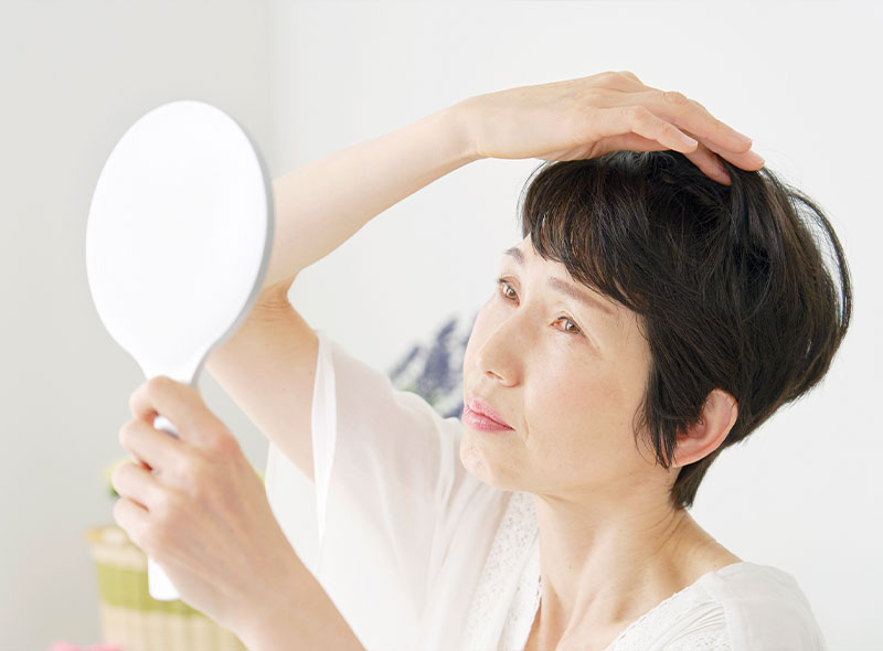 髪を太く長く成長させることで頭髪の密度を高め、健康的な髪の状態を目指します。