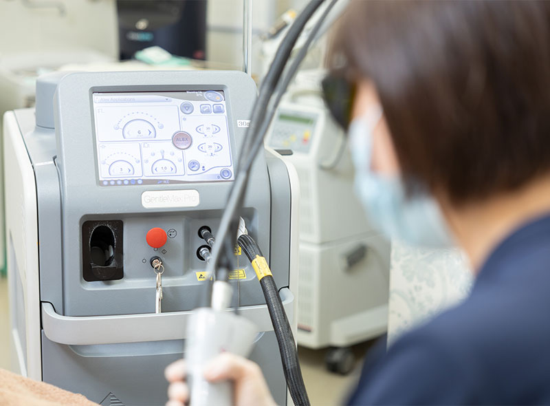 産毛や細い毛は反応しにくい傾向にありますが、照射時間や出力を微調整することで、あらゆる毛質にアプローチできるよう工夫しています。