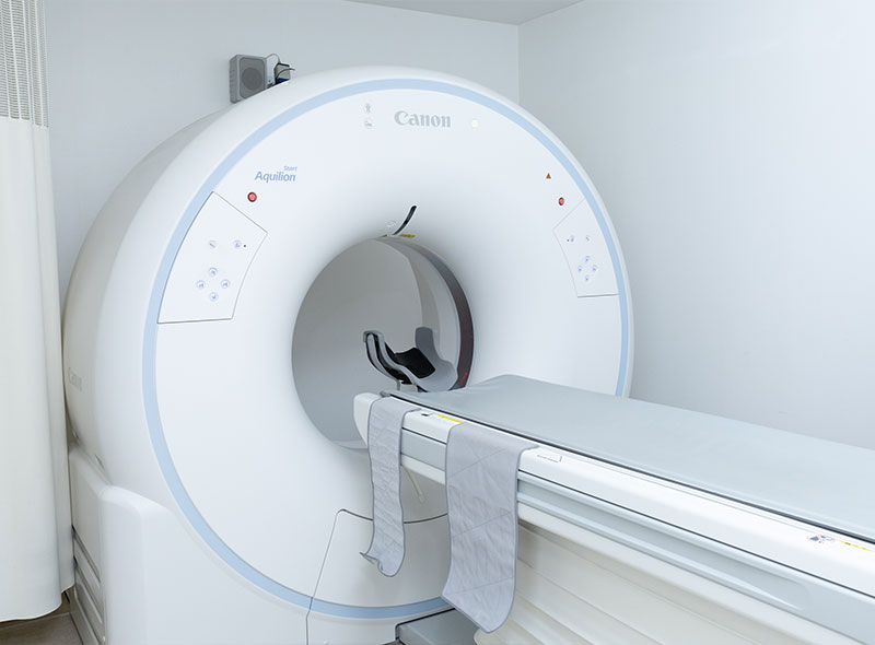当院の高精度なAquilion Start CTは、放射線被ばくを低減し、一般レントゲン撮影と同程度線量を目指した機種です。金属の入っている患者さんもきれいな画像処理ができ、短い息止めで撮影可能になりました。さらに肺CTでは肺気腫の程度を画像で表せるためにタバコなどによる肺のダメージを視覚的にわかりやすく表示できるようになりました。