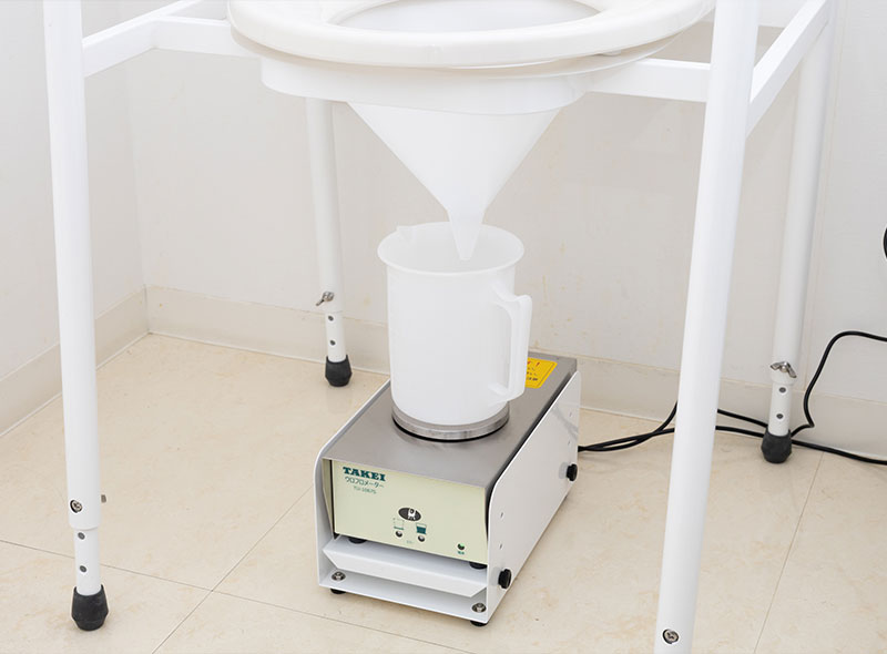 器械のついたトイレで排尿することによって尿の勢いを調べます。残尿検査を併用することで排尿状態を把握することができます。排尿トラブルは歳のせいではありません。尿勢低下や頻尿は重大な病気が隠れていたり、放置することでさらに悪化してしまいます。