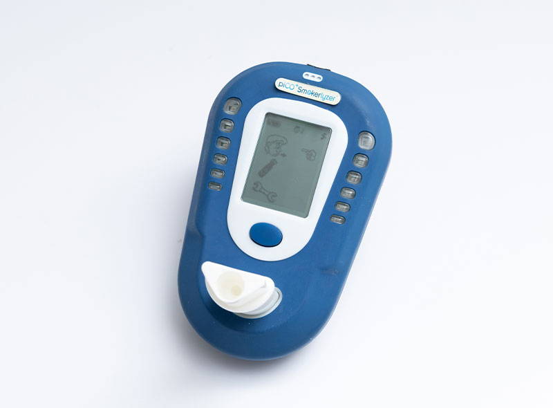喫煙によって体内に取り込まれる一酸化炭素(CO)の量を、呼気から測定する装置です。数値として可視化されるため、禁煙の効果を実感しやすく、治療継続のモチベーション維持に役立ちます。